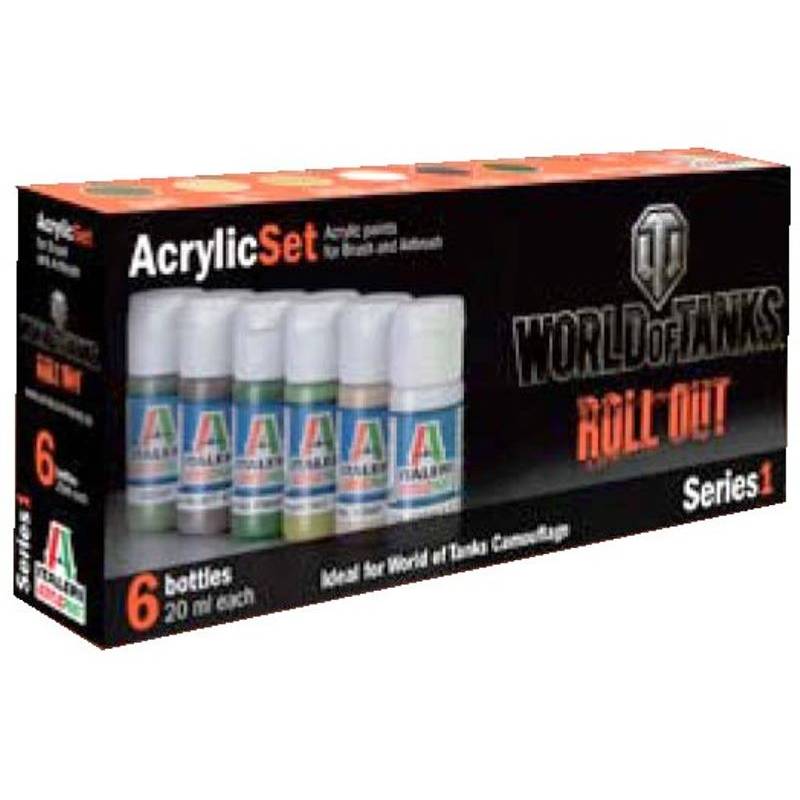 Contient six flacons de peintures acryliques pour reproduire les camouflages vus dans le jeu "World of Tanks"