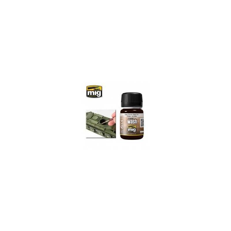 pigment maquette DARK BROWN WASH FOR GREEN VEHICLES MIG jimenez AMMO AMIG1005 maquette char promo