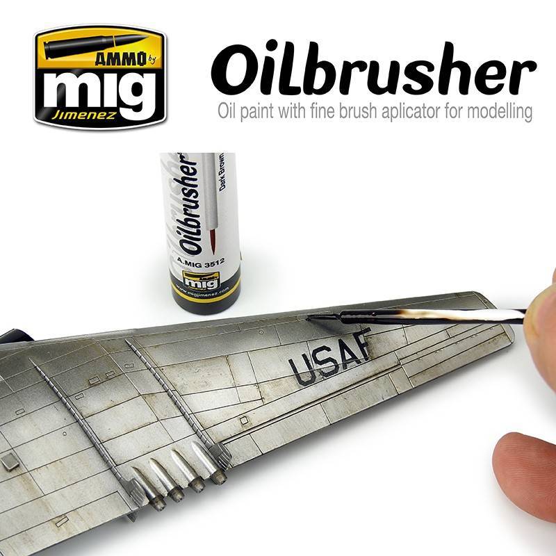 La gamme de couleurs OILBRUSHER inclut les nuances les plus souvent utilisées dans des modèles réduits, évitant les tons inutiles qui resteraient autrement inutilisés. Peindre avec des huiles n'a jamais été si amusant et simple. OILBRUSHER est votre peinture à l'huile avec le pinceau applicateur incorporé; un produit de MIG jimenez AMMO unique et exclusif.