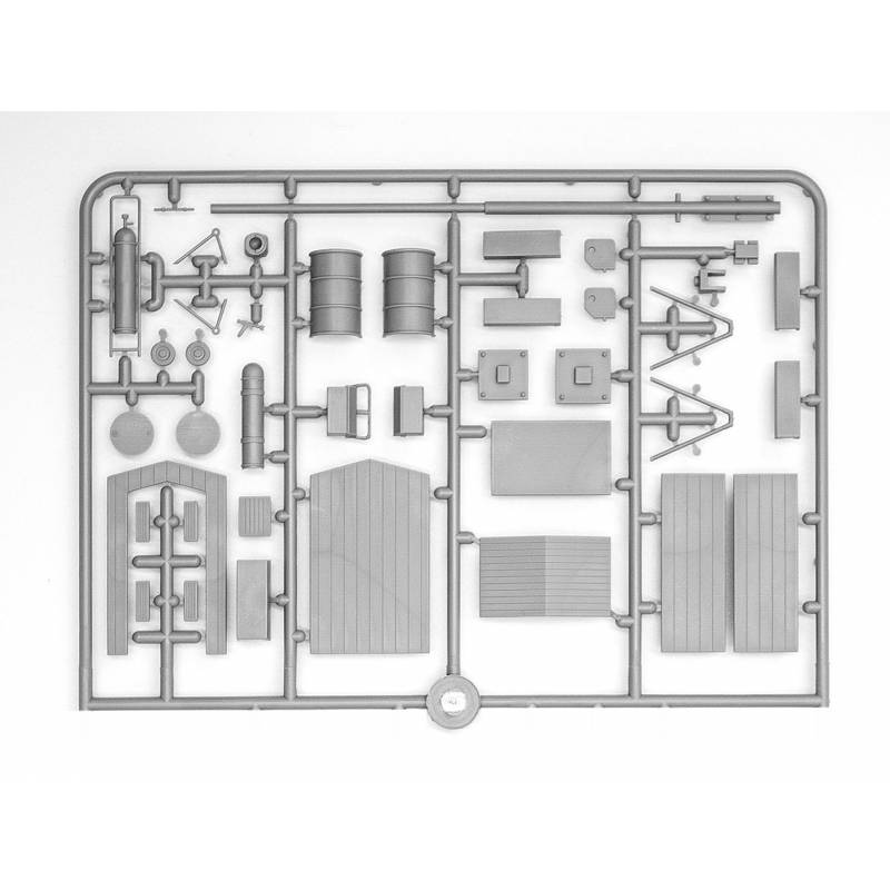 Le modèle ICM 48409 permet de recréer une scène réaliste d'un aérodrome allemand, incluant les équipements et le personnel essentiels au fonctionnement d'une telle installation. Le kit contient plus de 350 pièces et offre une large variété de détails pour rendre l'environnement authentique.
