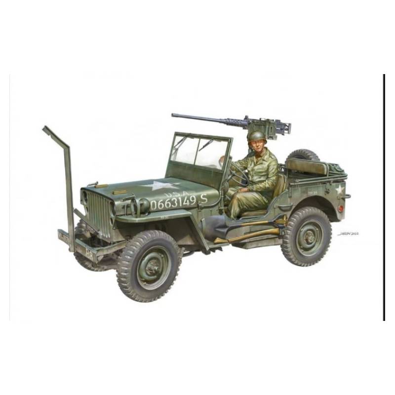 Plus de 640 000 exemplaires furent produits durant le conflit, devenant rapidement un outil de tous les instants pour les troupes alliées. Elle fut utilisée dans une multitude de rôles : ambulance légère, véhicule de reconnaissance, poste de commandement mobile, tracteur pour munitions ou pièces légères, et même plateforme pour mitrailleuse lourde M2 comme représentée dans ce modèle. Son succès est tel qu'elle fut exportée dans de nombreux pays alliés et, après la guerre, inspira la naissance des premiers SUV civils.