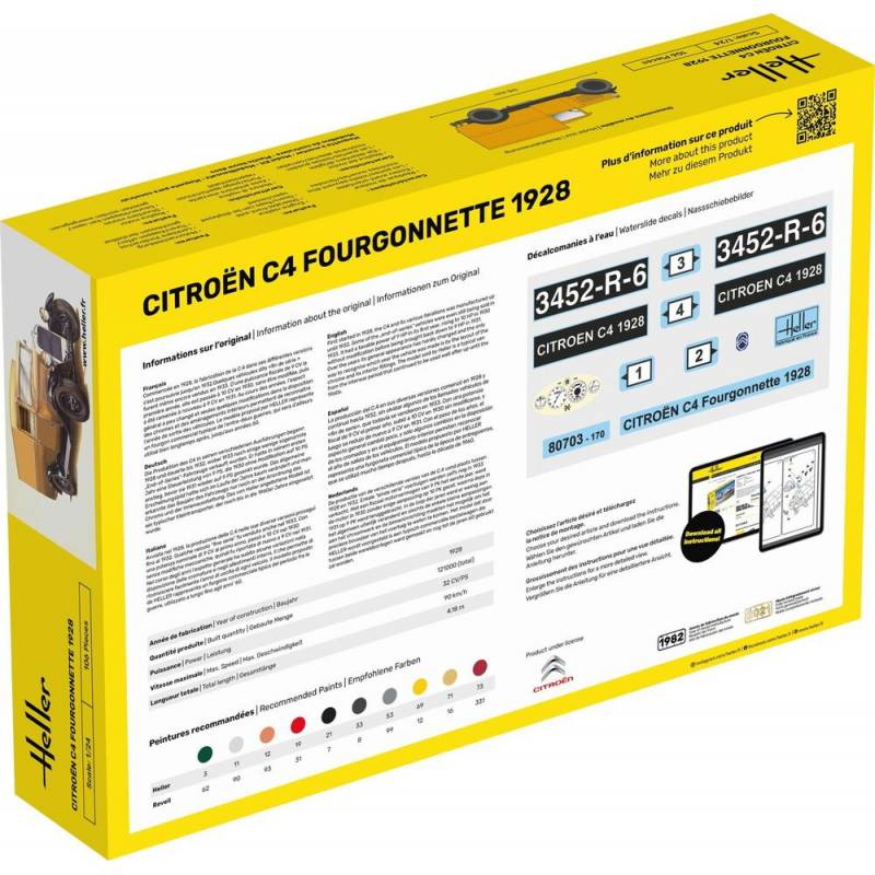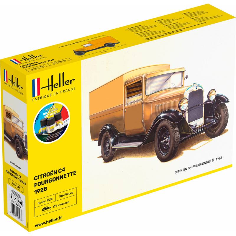 La Citroën C4 Fourgonnette de 1928 est l’un des véhicules utilitaires les plus représentatifs de l’entre-deux-guerres. Conçue sur la base de la berline Citroën C4, elle illustre parfaitement l’ingéniosité et la robustesse des premiers véhicules destinés aux artisans, commerçants et transporteurs français. Ce Starter Kit Heller, à l’échelle 1/24, propose une reproduction fidèle de ce modèle historique, accompagnée de colle, pinceau et peintures principales, idéale pour les débutants comme pour les maquettistes confirmés.