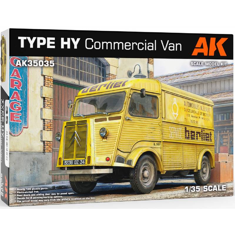 AK Interactive propose ici une reproduction très soignée du Type HY, avec une gravure nette de la tôle ondulée, un excellent rendu des volumes arrondis et une bonne restitution de la structure utilitaire du véhicule. La possibilité d’ouvrir les portes offre un fort potentiel de mise en scène avec chargement, figurines, matériel ou mobilier.