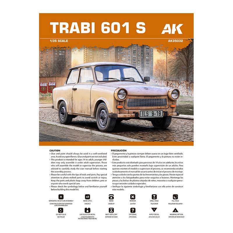 La référence AK35032 reproduit la version Trabant 601 S, produite dans la seconde moitié des années 1980. Cette variante se distingue notamment par :