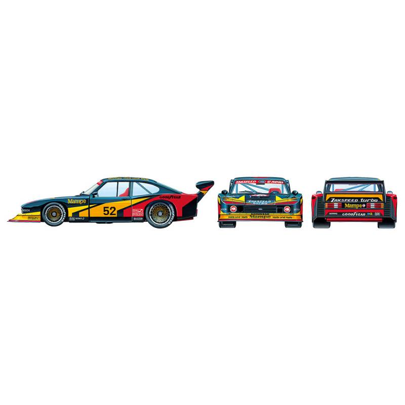 La Ford Zakspeed Capri Turbo est développée pour affronter le Championnat Allemand DRM (Deutsche Rennsport Meisterschaft). Transformée en véritable machine de course, la Capri reçoit une carrosserie très élargie et abaissée, ainsi qu’un moteur quatre cylindres turbo de 1 427 cm³ développant environ 375 chevaux. Grâce à l’utilisation massive de matériaux composites, son poids descend à seulement 790 kg, garantissant des performances remarquables.
