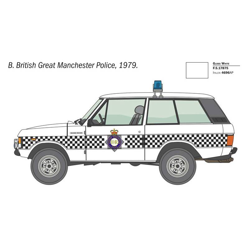 Le kit Italeri 93661 à l’échelle 1:24 propose une reproduction fidèle de cette version Police du Range Rover Classic. Il permet de recréer un véhicule emblématique avec ses marquages spécifiques et son allure reconnaissable, typique des services de police britanniques de la fin du XXe siècle.