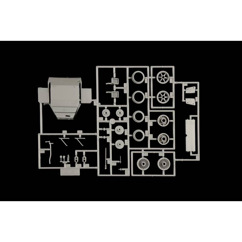 Les pneus en caoutchouc apportent un réalisme supplémentaire, tandis que les proportions du modèle sont respectées pour offrir une présence équilibrée en vitrine. Une fois assemblée, la maquette mesure environ 19,9 cm de long.
