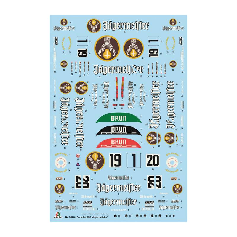 Le modèle inclut une planche de super décalcomanies permettant de reproduire fidèlement la livrée Jägermeister, élément central de l’identité visuelle du véhicule. La notice en couleurs facilite le montage et la mise en peinture, garantissant un résultat fidèle.